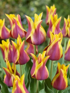 A gorgeous new fluted Tulip that produces elegant purple lily shaped flowers, with a golden yellow edge.