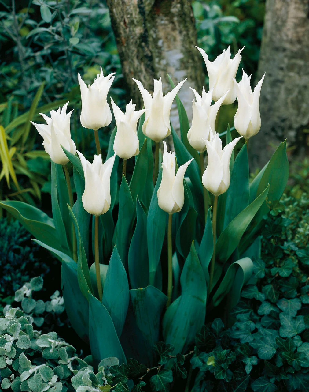 Tulip Tres Chic is an elegant pure white lily flowering tulip that flowers gracefully from April through to May. A wonder in any bed or border, whether it’s planted solo or paired with your favourite spring blooms. Grows to heights of 45cm.