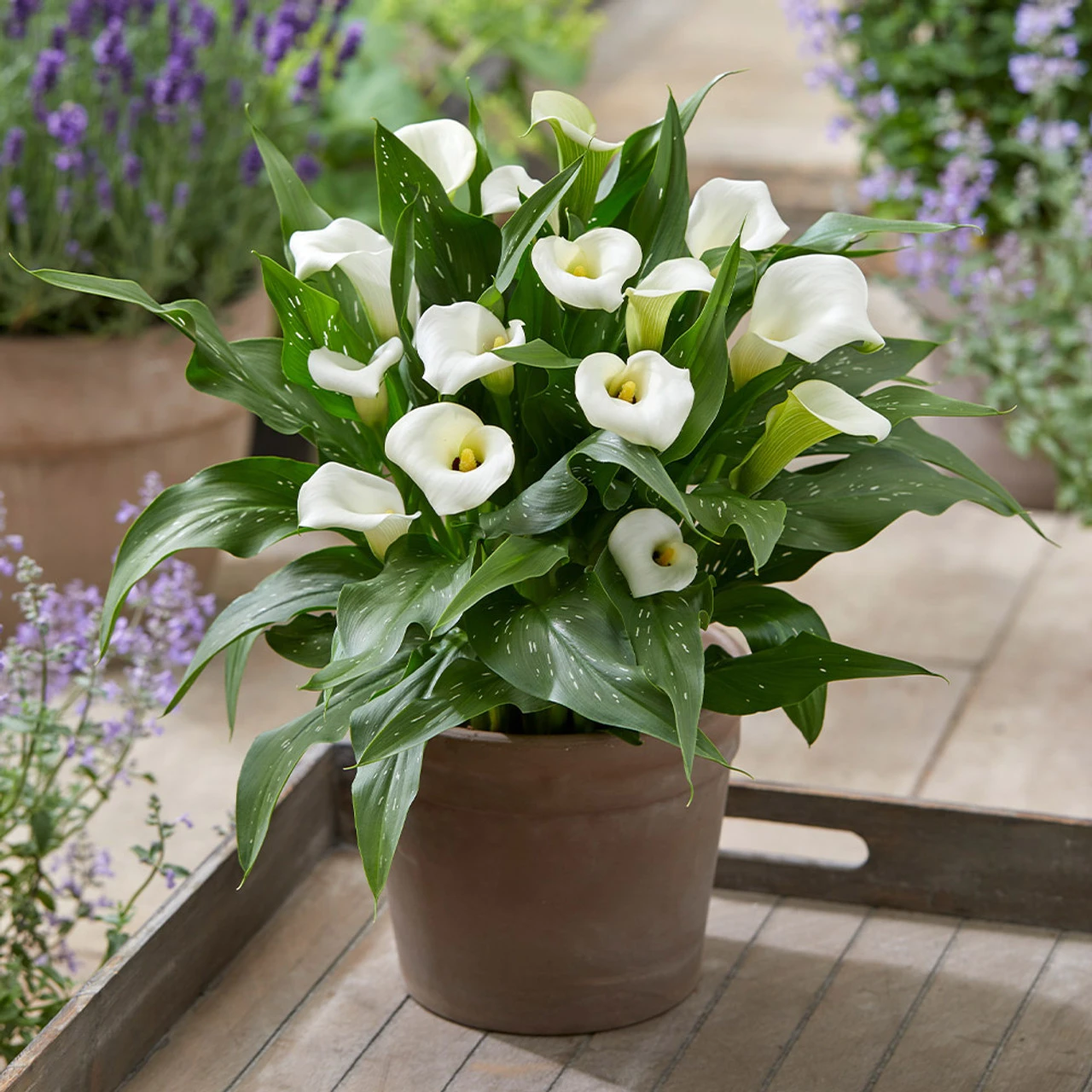 Plant your Zantedeschia tubers in compost in spring months. Ensure all risk of frost has passed before planting in your garden. Keep well-watered throughout its growing season, especially if the soil feels dry to touch. Dig a hole at least twice the bulbs depth and space each bulb around 30-40cm apart. This is due to their wide leaves and need more space to grow than a typical bulb.